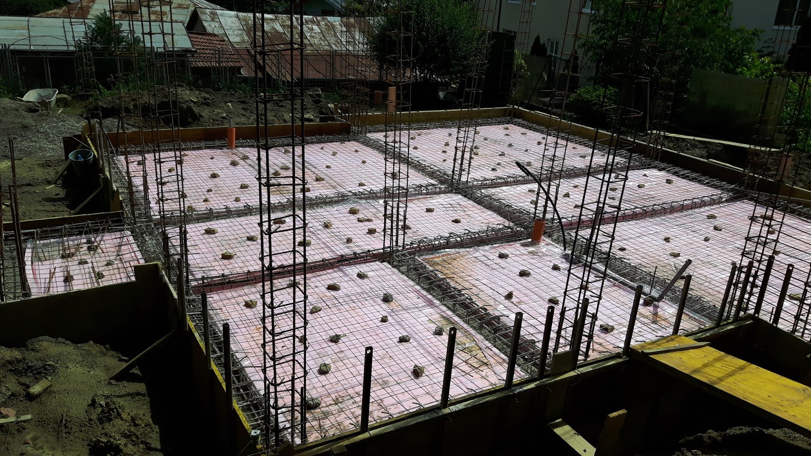 Lipsesc turnarile de beton in stalpi (probabil vreo 5m^3), armarea placii, armarea si cofrarea scarilor la interior si turnarea placii peste parter.